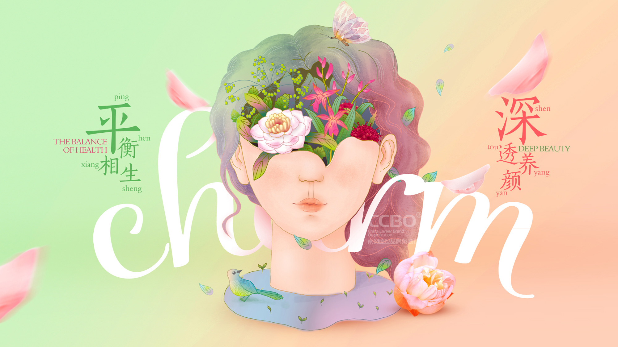 相生美學的品牌LOGO設計融合了樹枝、葉子、鳥兒、陰陽八卦及可循環,展現了動態平衡的概念及天然、生態獨樹一幟的風格。圖案中樹枝的巧妙的組成了 “相”字,主要表達通過中藥的調理達到和諧相生,陰陽平衡的概念。