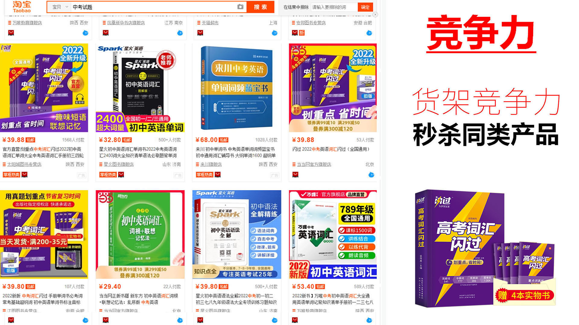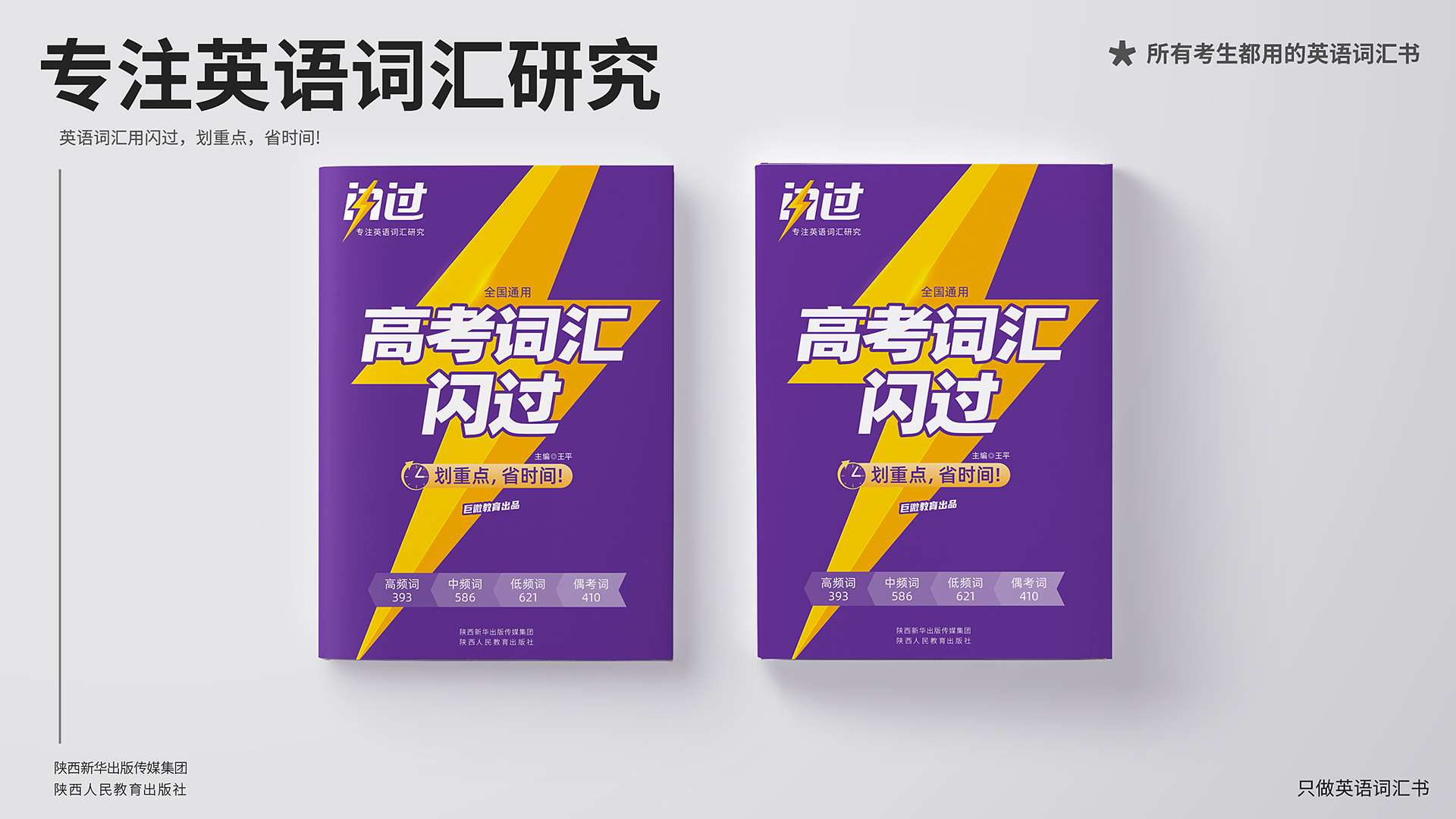試想一下,當賣了1億本閃過高考詞匯課本時,將會有1億以上的用戶看到這個書本。此時,書本上面是一個大大的閃電,那么這些目標用戶將對品牌的概念更加的印象深刻,但是,如果僅僅是文字的話。他們將視而不見。并且大大的閃電符號在書本類貨架上非常吸睛,相當于一個大聲售賣價值點的銷售員,24小時傳播課本的核心價值。