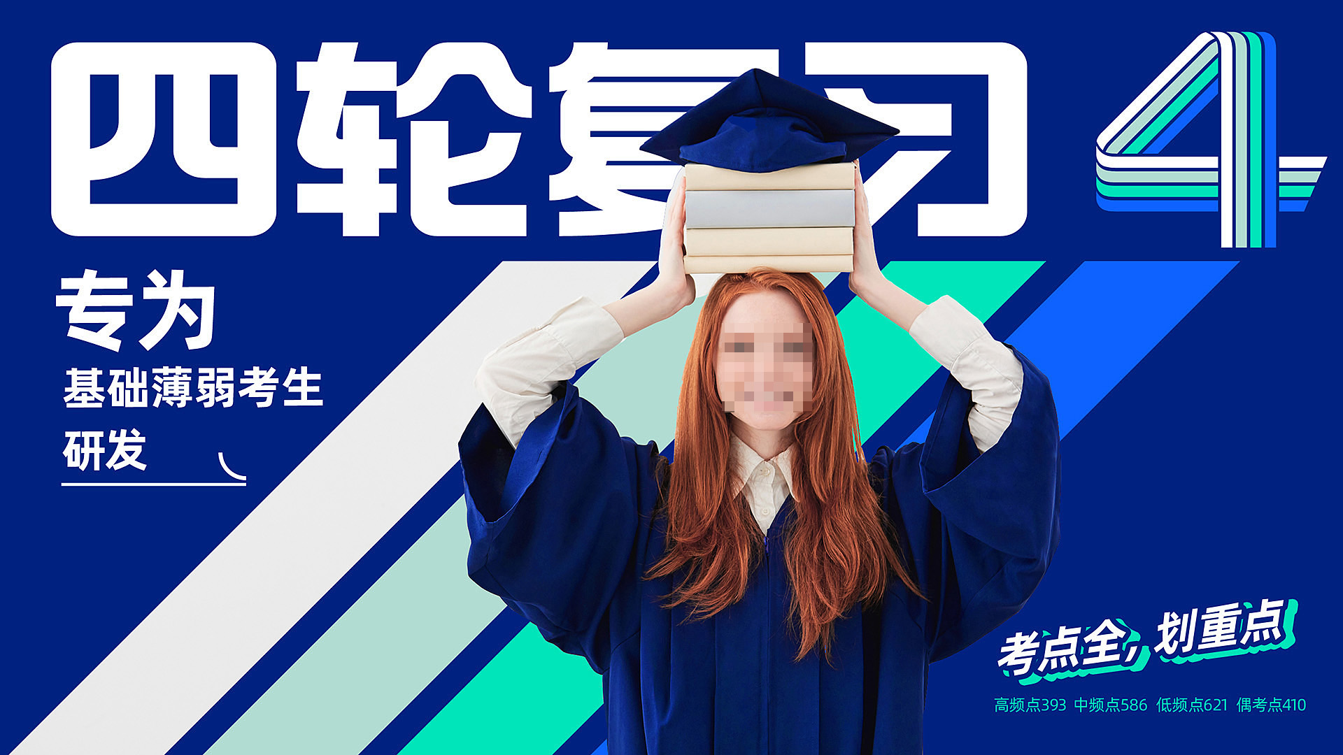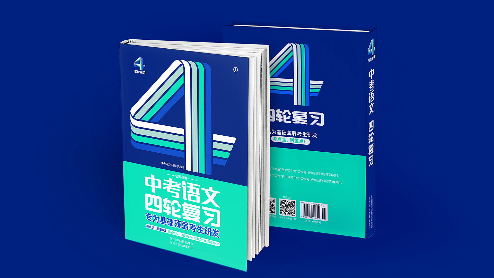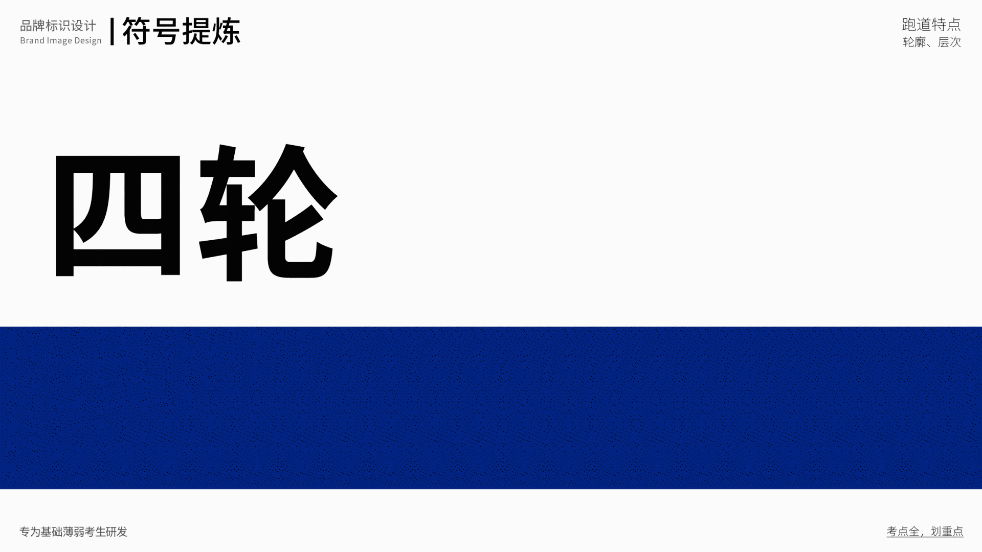 四輪復習,結合品牌名稱“四輪 ”,用“4”這個數字來表達,4條跑道,4輪復習,形象生動的場景畫面,讓視覺錘非常具備捶打力。數字是人類記憶最快速的信息,比圖像來記憶效率更高。4輪復習的數字“4”在書封放大化后,對視覺產生強烈的刺激,從而捕獲消費者的注意力,搶奪認知資源,并且能夠快速的在貨架競爭中跳出來,獲取優先被選擇購買的可能。